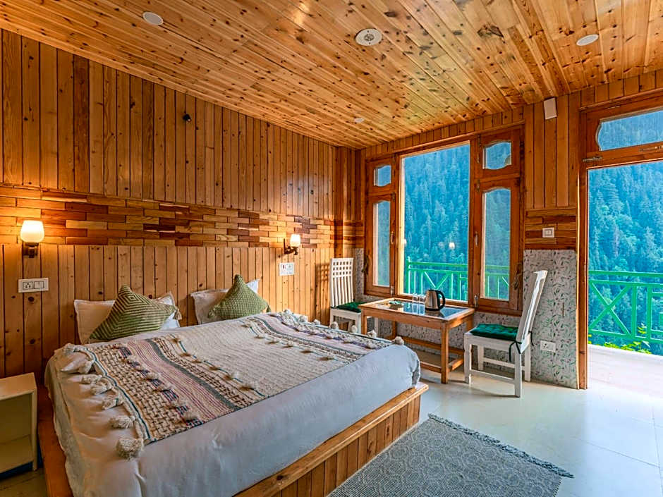 Escape to a mountain-view haven in Kotla, Jibhi, where mornings begin on a balcony framed by sweeping valley vistas and afternoons unfold on a sun-washed patio. A garden invites leisurely strolls and quiet moments, while free toiletries add a simple pampering touch. An adults-only setting keeps the focus on peaceful moments and the crisp, pine-scented air.